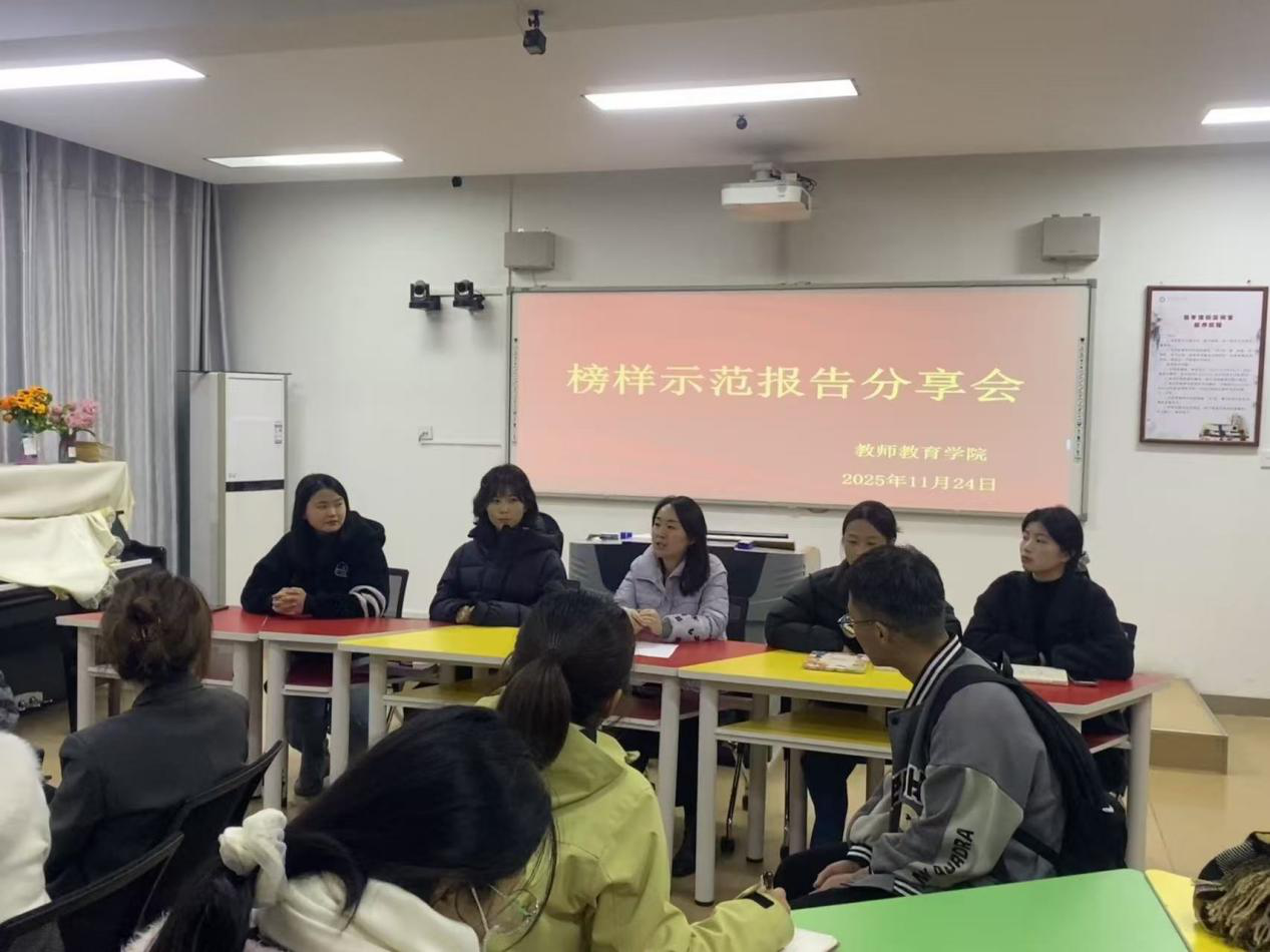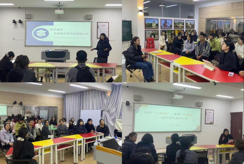 为充分发挥优秀学生的榜样引领作用,激励同学们在教学实践、技能提升、班级工作和学术研究等方面互相学习、共同成长。11月24日晚,学院在教七楼402室举行榜样示范报告分享会。本次分享会由研究生秘书常燕燕主持,2023级研究生宋晓薇、彭雨荷、樊世超和罗晓雨同学作分享,2024级、2025级小学教育专业全体研究生积极参与。