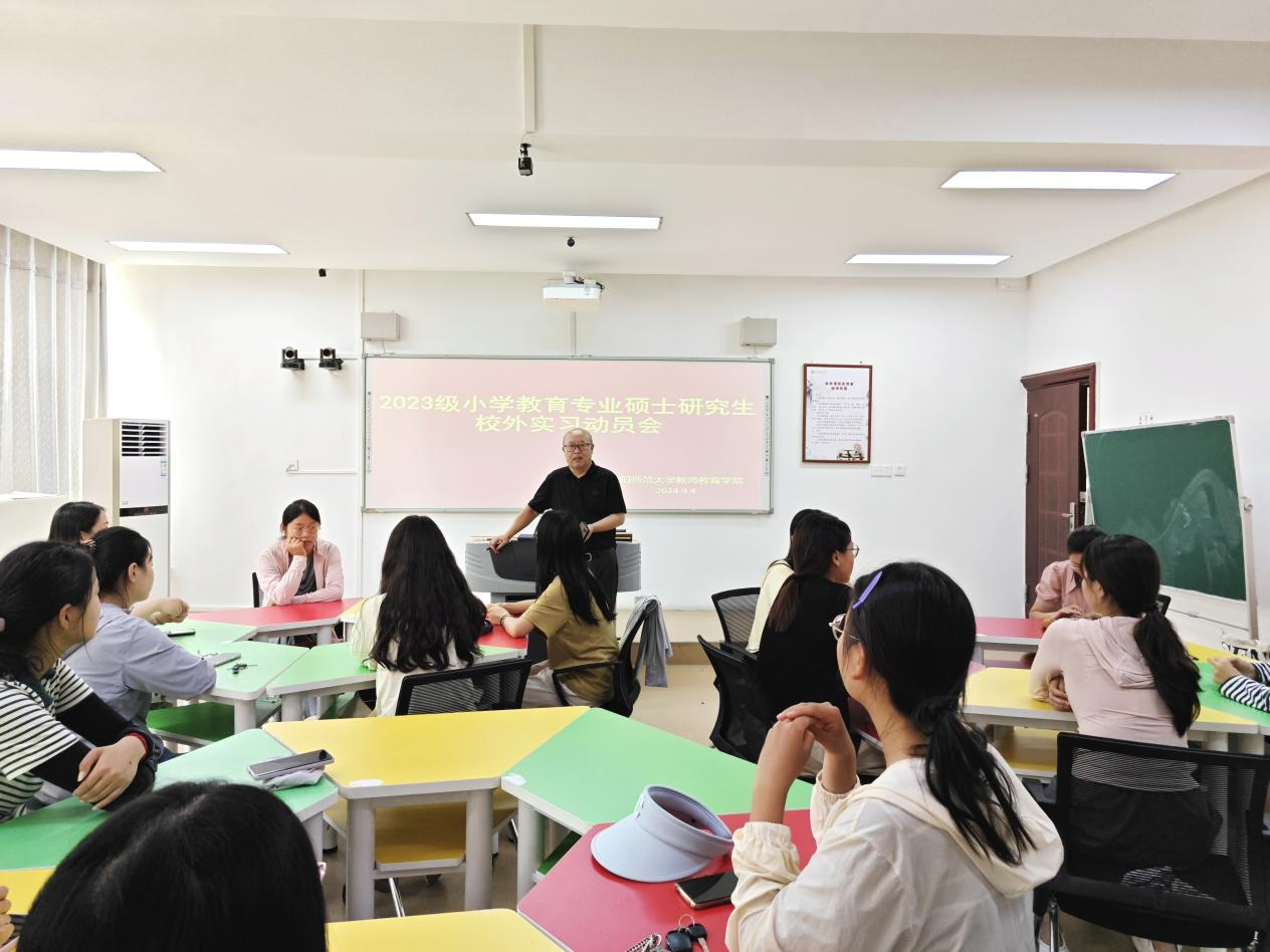 为提升研究生教育实践能力和职业素养,确保教育实习工作顺利进行,9月4日上午,教师教育学院在教七楼402召开了2023级小学教育专业硕士研究生教育实习动员会。会议由院长李文田主持,研究生秘书常燕燕及2023级全体研究生参加了本次动员大会。