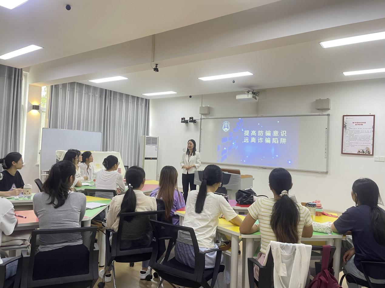 为增强新生安全防范意识,提高新生自我防范能力,切实保护自身网络和财产安全,9月11日下午,教师教育学院在教七楼402召开了2024级研究生新生入学教育——防范电信网络诈骗专题教育。活动由研究生秘书兼辅导员常燕燕老师,2024级全体研究生参加。