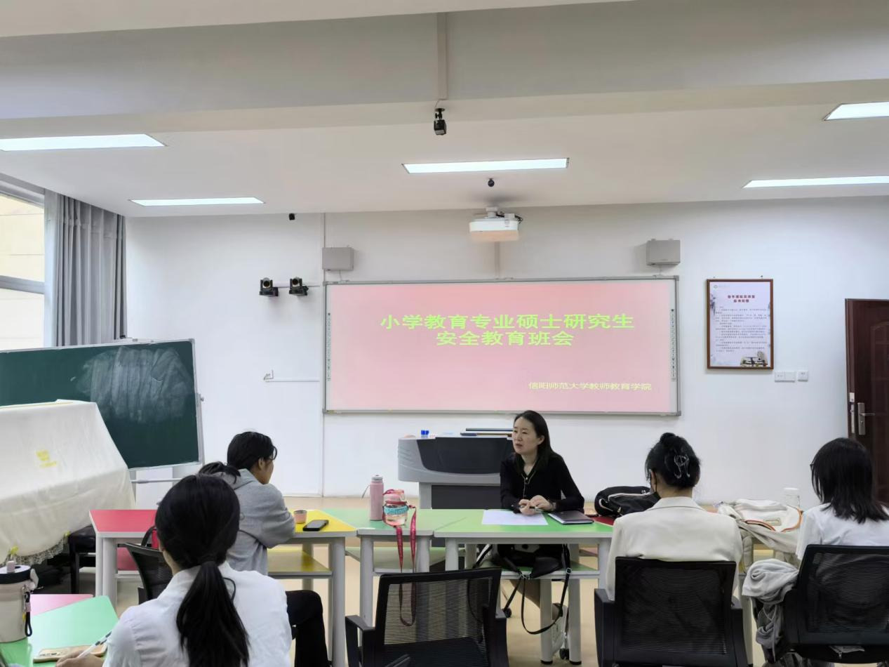 为切实提升研究生安全防范意识,2025年5月8日下午,教师教育学院在教七楼402教室举行了小学教育专业硕士研究生安全教育主题班会。2024级全体研究生参加此次班会,班会由研究生秘书兼辅导员常燕燕老师主持。