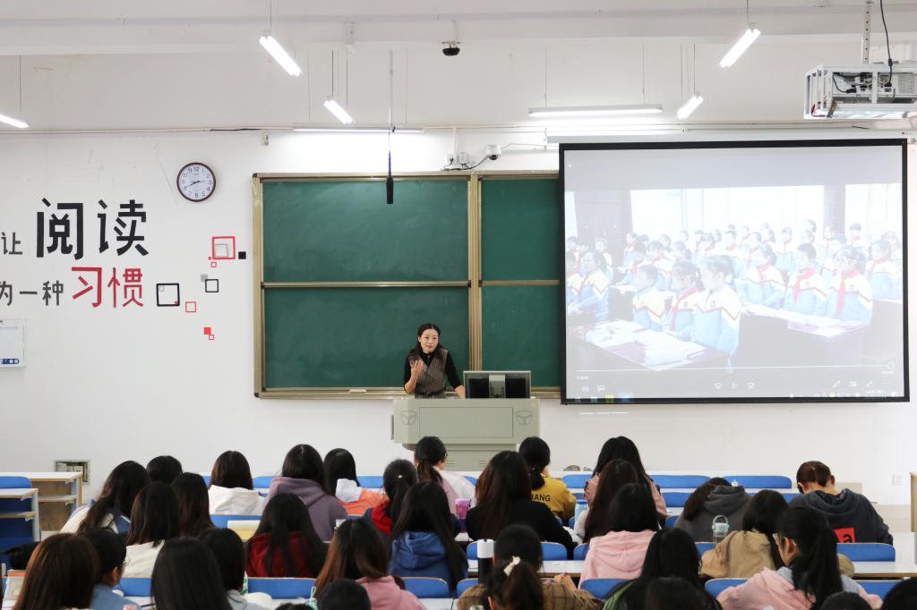 在提问交流环节,陈老师解答了同学们提出的问题,她指出,作为未来的乡村教师要学会“培养良好的心态”、“改变学生课堂听讲状态”、“适当给孩子奖励”以及“多安排课时”的方法提高教学质量。她希望,同学们注重提高自己的工作效率,精心打造自我课堂,赋予其感染力和表现力,深入了解学生并多鼓励,激励学生。
