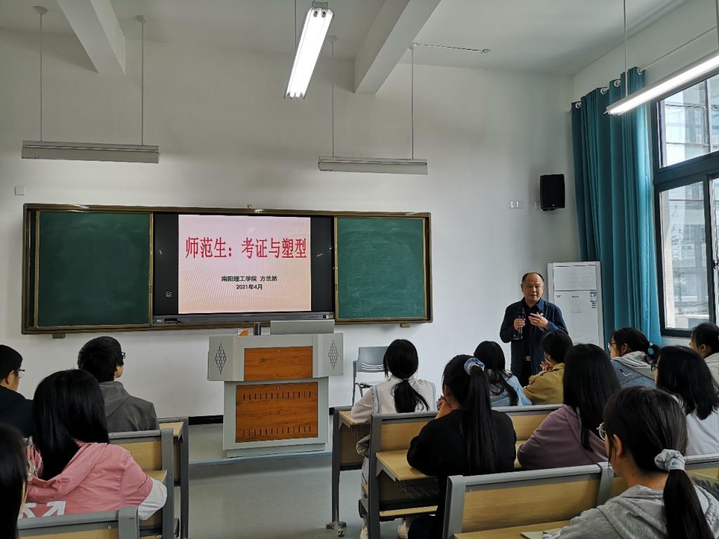4月27日下午,应教师教育学院邀请,南阳理工学院教师教育学院方兰然教授为淮河校区小学教育专业2020级全体学生和部分教师作了“师范生考证与塑型”的精彩报告。报告会由张祥耀主持。
