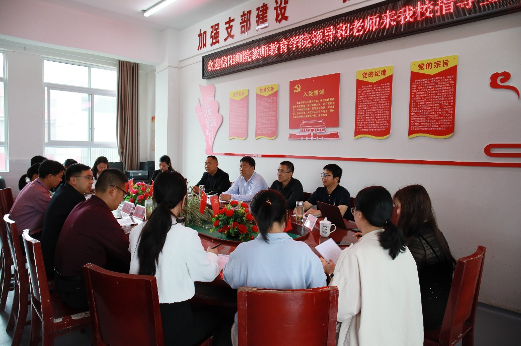 5月11日,教师教育学院院长付永昌和张申亚、张祥耀、赵菲、马茵茵一行5人,到新县列宁小学开展双向交流培训活动。新县教育局教师培训中心主任陈宗彦、列宁小学校长曹积秉、副校长肖广才、代长刚等主要负责人参加活动。