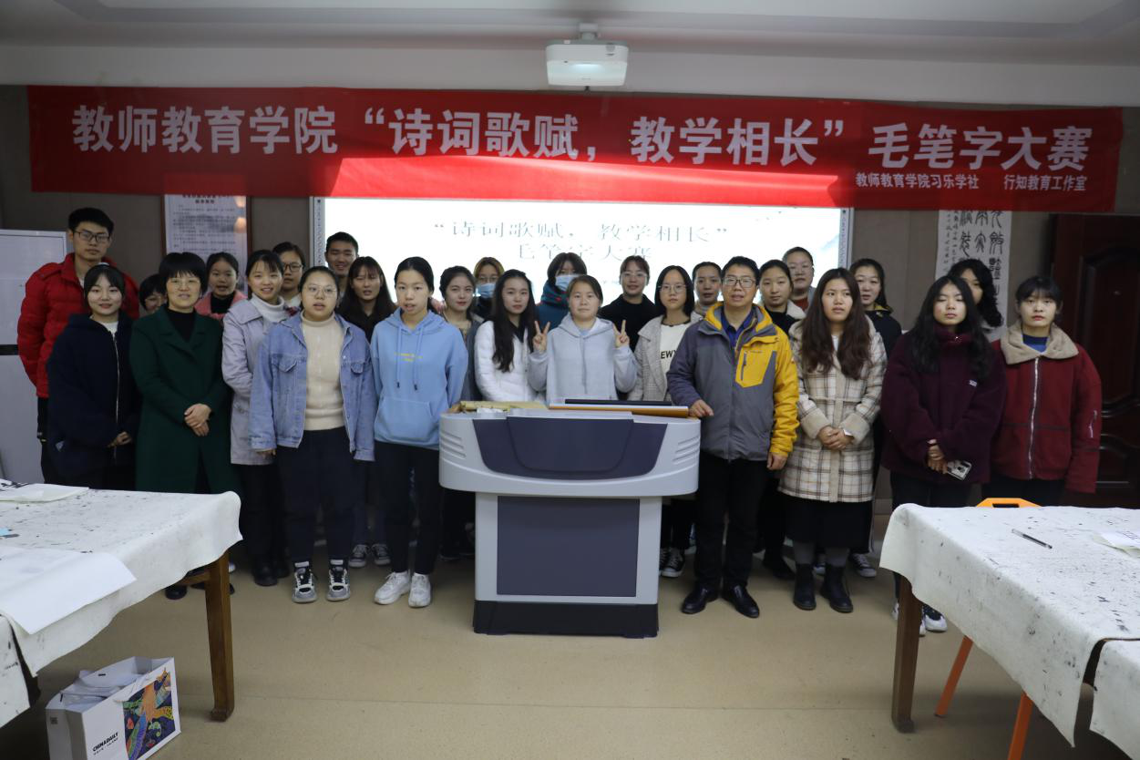 11月21日,由教师教育学院习乐学社、行知教育工作室主办的“诗词歌赋教学相长”毛笔字比赛在教七楼201教室顺利举行。我院张祥耀老师、谭阿明老师、张峰老师出席活动并担任评委。