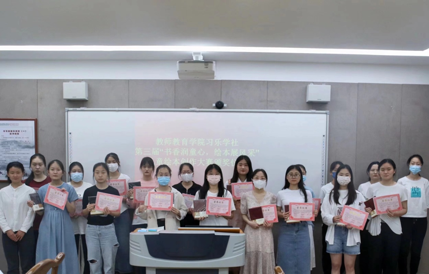 5月27日,由教师教育学院行知教育工作室、习乐学社主办,教育科学协会、建筑爱好者协会、声音文学社、大学生书法爱好者协会、童真话剧社、信阳师范学院附属幼儿园共同承办的第三届“书香润童心,绘本展风采”儿童绘本创作大赛颁奖仪式在教七楼201教室顺利举行。此次大赛采取线上为主、线下为辅的形式,全校300余人参与,我院教师巫梦晓、王召召担任此次大赛评委。