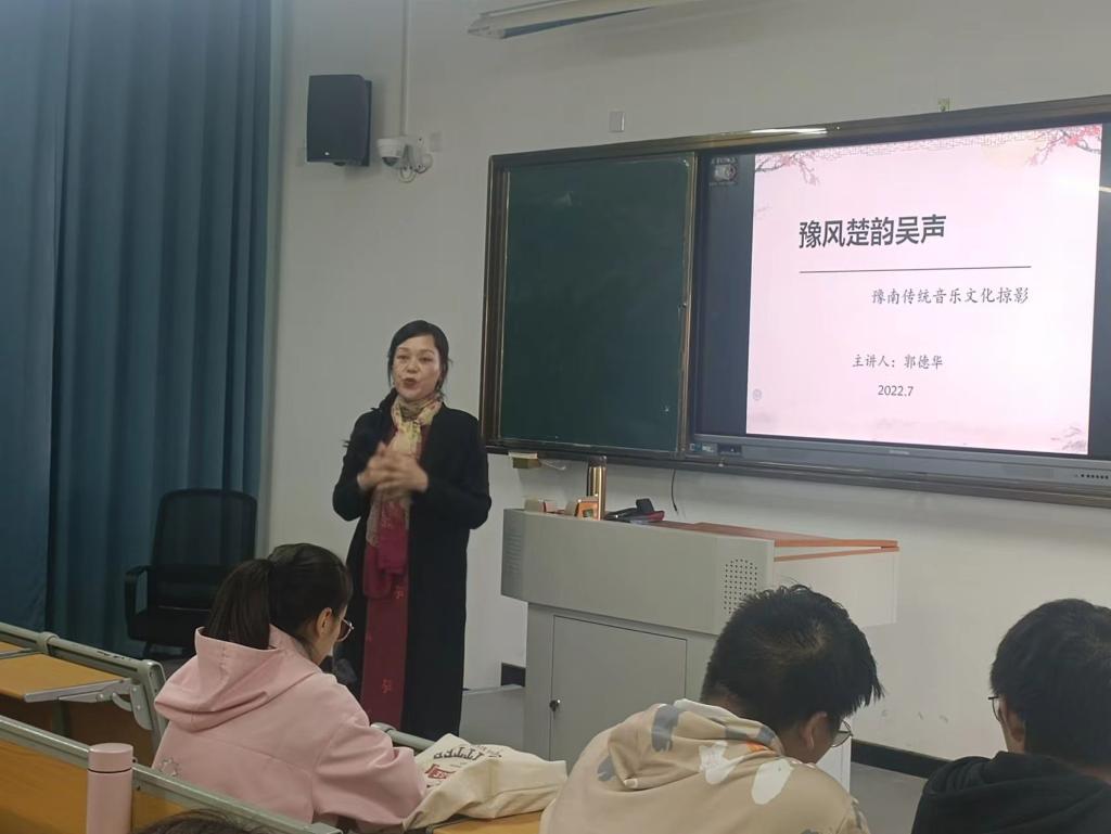 10月31日下午,我校音乐与舞蹈学院郭德华教授应邀在淮河校区理综楼204室“豫风楚韵吴声——豫南民间音乐文化随谈” 主题报告。教师教育学院教学秘书赵国龙及2022级小学教育全体学生积极参加。报告会由赵国龙主持。