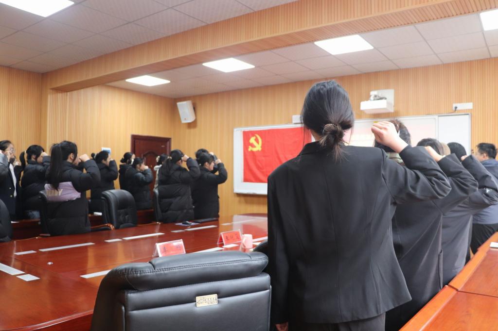 党委副书记王艳蕊对按期转正的党员表示祝贺,对新吸纳为预备党员的同志表示热烈欢迎。她向党员同志提出了三点建议。一是坚定共产主义的理想信念,牢固树立正确的世界观、人生观、价值观。二是树立终身学习理念,加强能力修养、素质修养,用科学理论武装头脑,指导工作。三是充分发挥先锋模范带头作用,展现党员先进风采,积极参加党组织的各项活动。