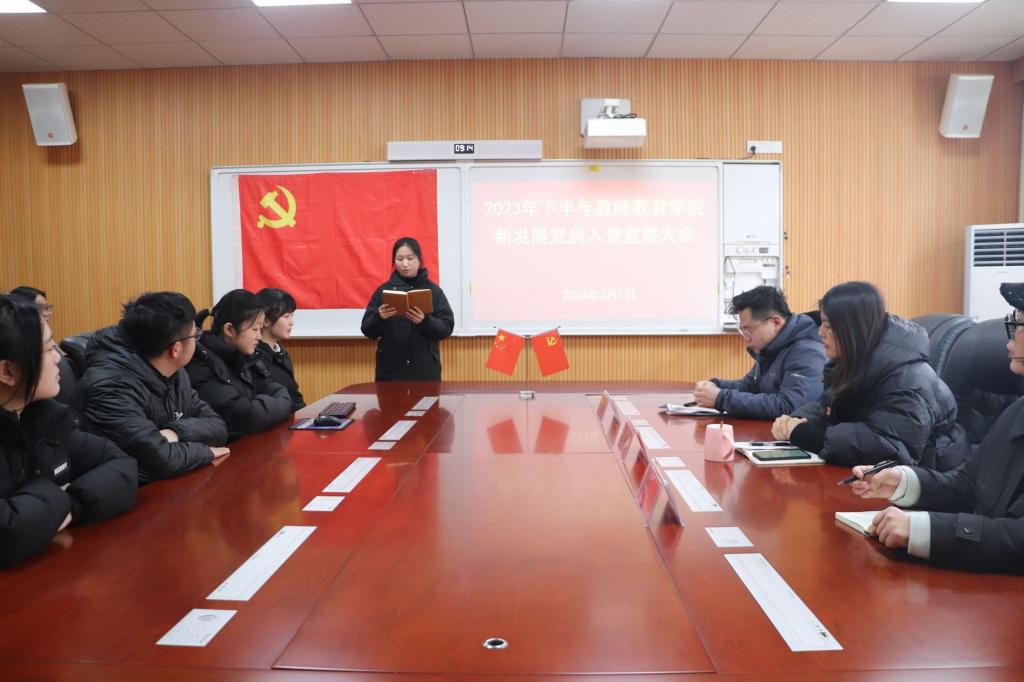 入党宣誓仪式是党员发展程序的重要环节,旨在增强党组织的凝聚力。此次会议进一步增强了新发展党员的荣誉感、责任感和使命感,坚定了党员爱党拥党的理想信念,为教师教育学院基层组织建设提供了坚实的队伍基础。