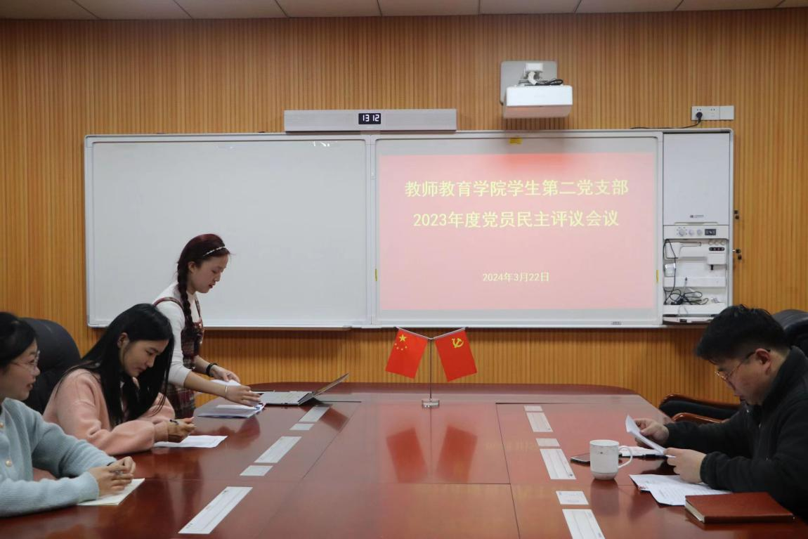 为深入学习贯彻习近平新时代中国特色社会主义思想,认真贯彻落实全面从严治党要求,切实发挥民主评议在党员教育管理和监督方面的作用,始终保持党员队伍的先进性和纯洁性,3月22日,教师教育学院于教七楼301会议室召开学生第二党支部2023年度民主评议党员大会,教师教育学院学生第二党支部书记姚雨承及支部全体学生党员参加,此次评议会议由党小组长杨芳主持。
