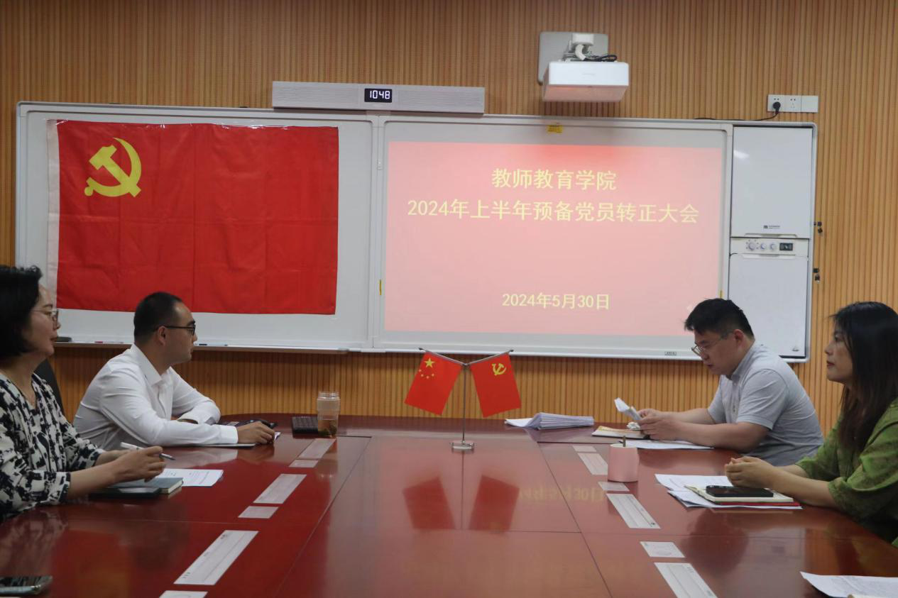 5月29、30日,教师教育学院于教七楼301会议室召开第39期预备党员转正会议。教师教育学院党委副书记王艳蕊、学生第一党支部书记李杨、第二党支部书记姚雨承、第39期全体预备党员以及部分党员参加会议。会议由姚雨承主持。