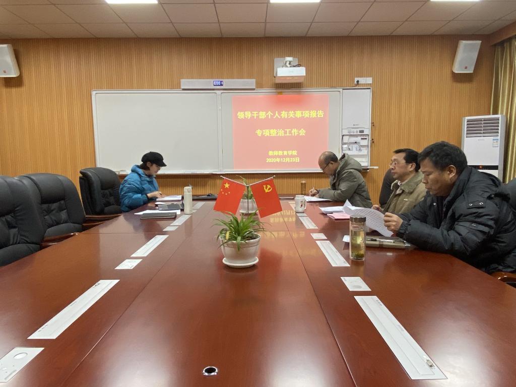 根据校领导干部个人有关事项报告专项整治工作会议要求,教师教育学院认真贯彻落实,12月23日上午,教师教育学院在教7楼301会议室召开处级领导干部个人有关事项报告专项整治工作会,学院处级领导干部参加。会议由党委副书记潘登主持。