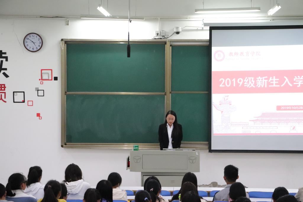 为深入推进“不忘初心、牢记使命”主题教育工作向纵深发展,丰富教育活动内容,拓展学习教育形式,进一步教育和引导师生学习先进典型事例,坚定理想信念,树立远大抱负,不忘立德树人初心,牢记教书育人使命,10月28日,学校党委宣传部和教师教育学院联合邀请了“全国优秀教师”李芳生前所在的信阳市浉河区绿之风希望小学校长王斌、河南省委宣传部李芳先进事迹报告团成员、绿之风希望小学老师赵艳来教师教育学院作李芳同志先进事迹暨师德师风报告,教师教育学院全体教职工党员、学生党员和2019级新生、部分卓越教师实验班学生聆听了报告,报告会由教师教育学院党委副书记潘登主持。