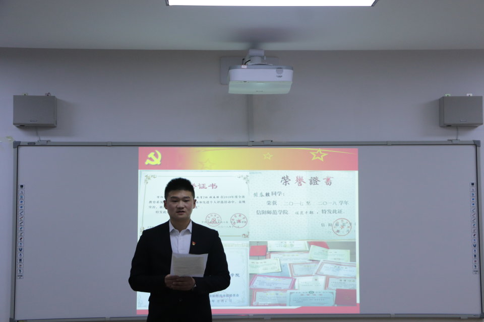 会上,三名学生党员代表分别从思想、学习、生活等方面向党员发展对象们分享自己在做合格学生党员道路上的心得体会。其中,张春胜以党员、学生会主席、班委的身份向大家讲述了责任心的重要性。他结合学院正在开展的“不忘初心、牢记使命”主题教育活动,对与会人员提出三点要求:一是深刻领会习近平总书记重要指示精神;二是以先进典型为镜,见贤思齐、深学笃行;三是大力挖掘身边的先进典型,充分发挥榜样的示范引领作用。仇庭慧畅谈自己入党后的体会和感悟,使与会人员深受启发。方晴则表示,作为党员应学习贯彻习近平新时代中国特色社会主义思想及党的十九大精神,不忘初心,砥砺前行。接着,党员发展对象们就工作、学习、生活、时间分配等问题向学生党员代表们提出疑惑,学生党员代表们以自身经验、工作感受和专业知识一一进行了详细的解答。