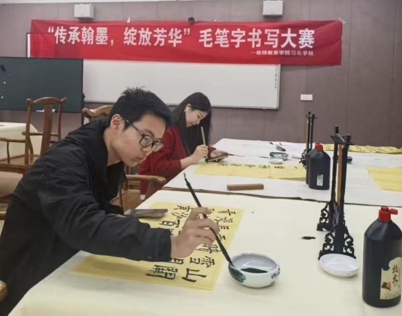 为弘扬中华优秀传统文化,点燃师生对书法艺术的热情,2025年11月13日,信阳师范大学教师教育学院行知教育工作室携手习乐学社,共同启动“传承翰墨·绽放芳华”毛笔字书写大赛,并于12月9日在教七楼201教室顺利收官。