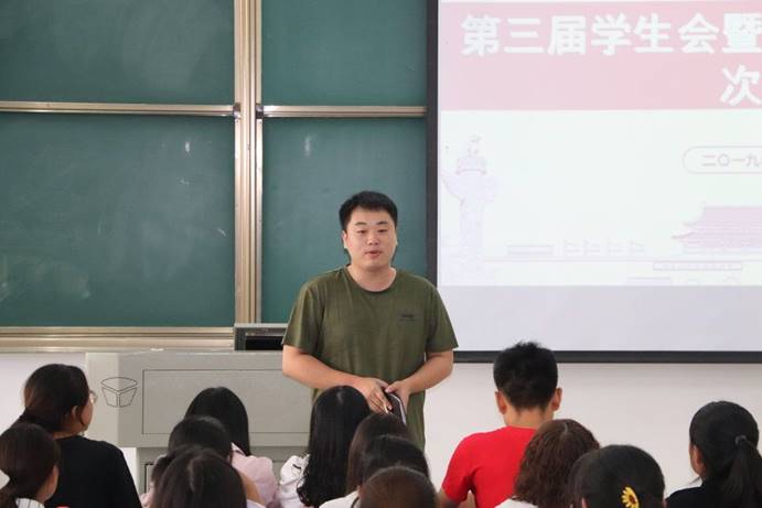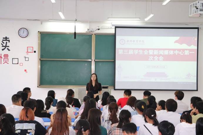 会上,李依老师表示,学生会是联系学院与学生的桥梁和纽带,希望学生会成员在工作中团结一致,协同创新,不断锤炼工作思想,凝炼工作作风。接着,刘莅原老师对全体学生干部提出三点要求:一是做好模范带头作用,严于律己;二是临近国庆,要做好学生在校、离校安全保障工作;三是要将学生会及新闻媒体中心作为锻炼能力、增长才干的重要载体,抓住机遇,不忘初心,砥砺前行。最后,各部门成员按次序逐一进行自我介绍,旨在加深各部门成员间的认识和了解,也为日后各部门能够开展好各项活动奠定良好基础。大会在热烈的掌声中落下了帷幕。