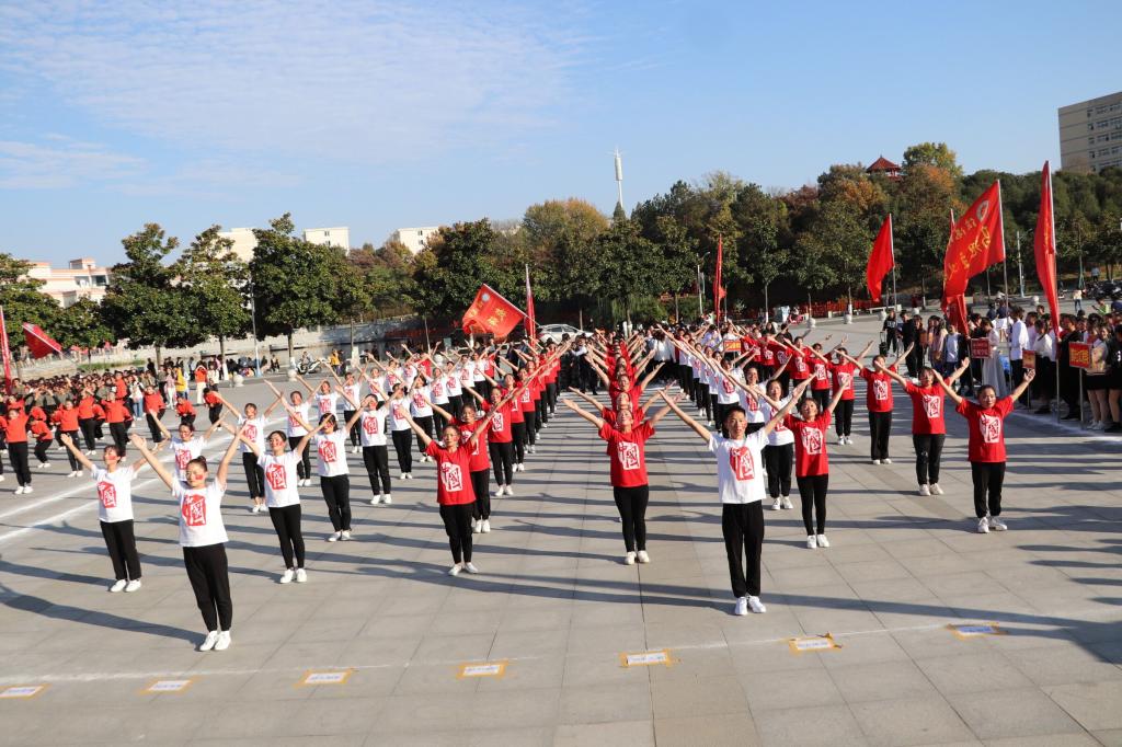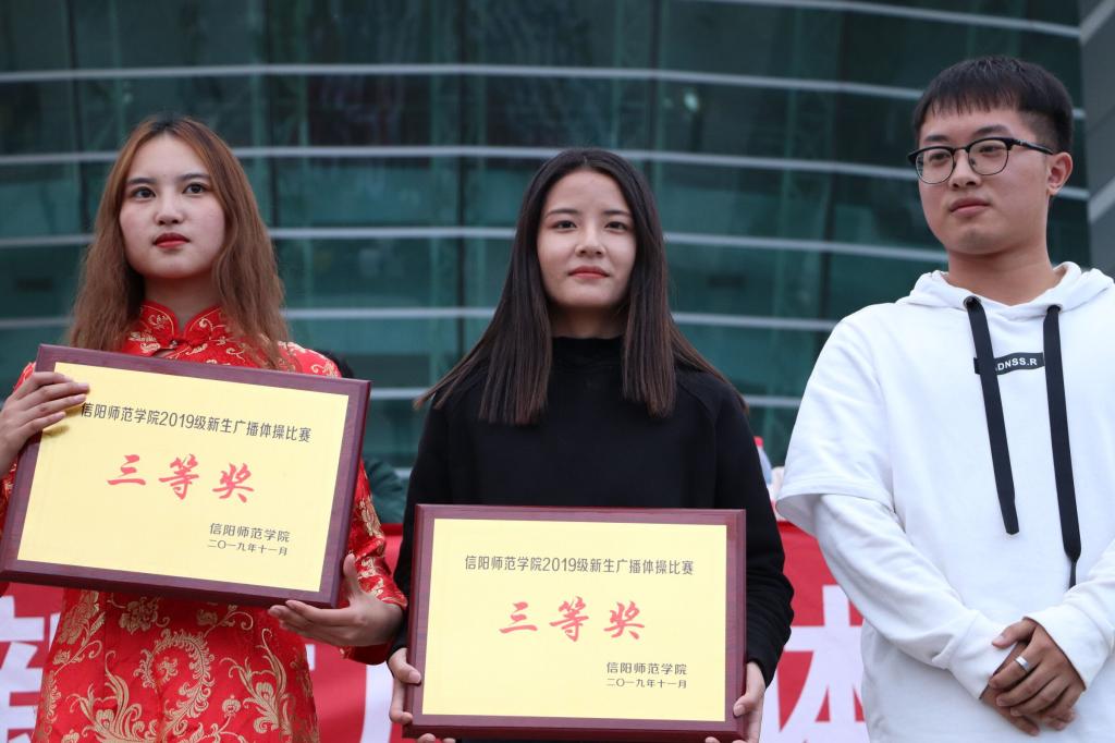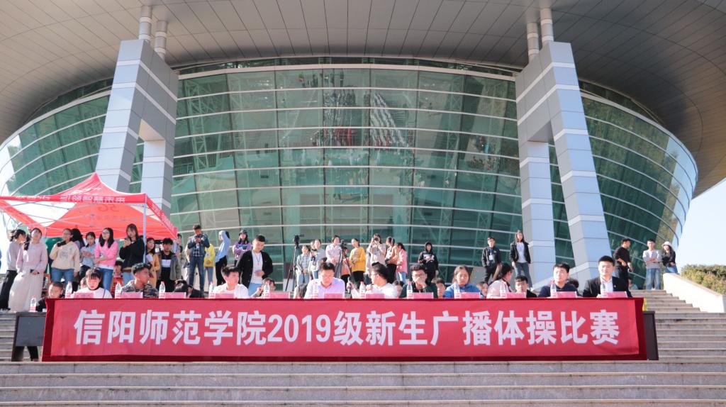 为切实推动学生阳光体育运动的广泛开展,吸引广大青少年学生走向操场、走进大自然、走到阳光下,积极参加体育锻炼,增强个人身体素质,展现当代大学生的青春风采.11月12日,信阳师范学院在青年广场举行2019级新生广播体操比赛,各学院团委老师出席本次比赛。