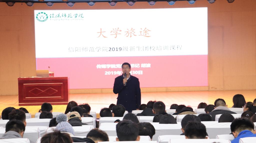 11月30日上午,传媒学院党委副书记胡波应邀为体育学院、旅游学院、教师教育学院2019级新生团员授课,体育学院副书记柴九昌、团委书记赵倩倩莅临现场与三个学院2019级新生团员共同参加此次活动。此次团课由柴九昌主持。