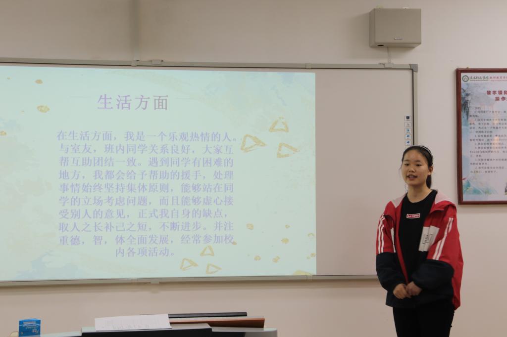 11月5日中午,教师教育学院于教七楼402教室开展了由学工办学生党团办公室承办的“魅力团支书”“活力团支部”风采展示评选活动初赛,学生会主席团成员担任评委,参加比赛的选手为2019级3个班的团支书,此次比赛由王晶晶主持。