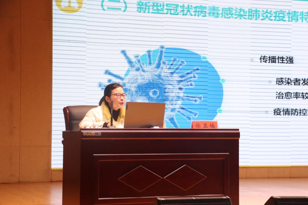 会议伊始,王晶晶首先向大家简要介绍了新生团校培训的主要内容。接着,徐亚南老师以“在抗击重大疫情中成熟与成长——与大学生谈抗击新冠肺炎疫情”为题,围绕正确认识新型冠状肺炎及其影响、坚决打赢防控疫情的特殊战斗、在抗击疫情中成熟与成长三个方面展开讲解。在第一方面的讲解中,徐亚南老师从新冠肺炎的基本特征、临床表现及传播途径等方面带领同学们更加深入地了解了新冠疫情,并通过具体分析疫情对个人、家庭、社会、国家乃至世界的影响,希望同学们能全面观察、辩证分析、动态认识、正确看待,同时,叮嘱同学们在疫情缓解的情况下,也要时刻注意个人防护,养成良好的卫生健康习惯,做好科学防控。在第二方面的讲解中,徐亚南老师指出,疫情防控时间紧、情况急、任务重,在党的坚强统一领导下,当下疫情形势正朝着常态化方向发展,但仍要保持警惕,她呼吁同学们在做好自身防护的前提下,充分发挥志愿者精神,主动投身到疫情防控阻击战当中,用实际行动为这场战役贡献一份力量,践行新时代青年学子的使命担当。在第三方面的讲解中,她表示,希望同学们能够在疫情这场危机中,能够有所收获和成长,不断丰富健康安全知识、强化责任担当意识、提高自我防护能力、养成健康生活习惯,学会并运用这些知识,使自己和他人得到更好的保护。本次团课至此圆满结束。