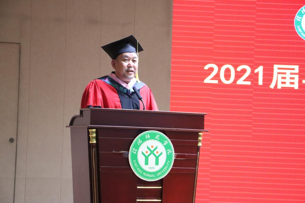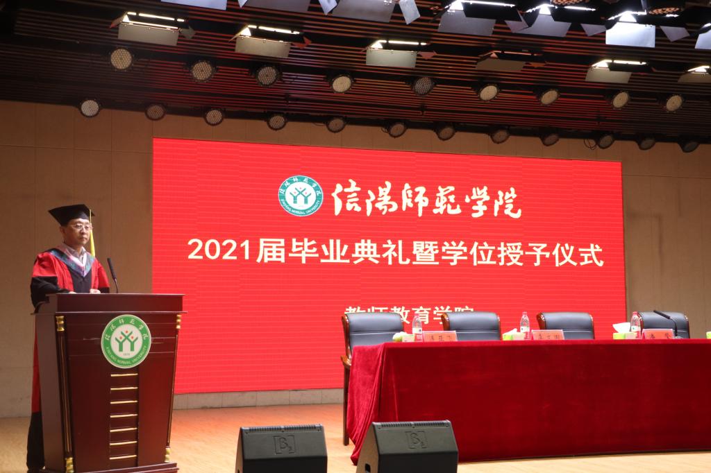 6月9日下午,教师教育学院在理科楼报告厅举办2021届毕业典礼暨学位授予仪式。教师教育学院党委副书记潘登、副院长付永昌教授、李文田博士、张申亚副教授、连亚飞博士、赵国龙副教授、2021届本科毕业生、教职工老师及在校学生参加了此次仪式活动。仪式由党委副书记潘登主持。
