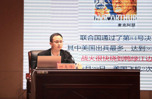团课伊始,严赫对全体新生的到来表示欢迎,并对付春锋做了详细介绍。接着,付春锋以电影《长津湖》为切入点,围绕抗美援朝胜利原因、意义、精神以及如何继承和发扬四个维度系统阐述了抗美援朝战争的历史进程和时代意义。他运用历史资料,通过典型历史事件,帮助广大师生深刻理解抗美援朝战争是具有非凡气魄和胆略的历史性决策,切实体会战争的残酷性与人民志愿军的血性铁骨。他指出,面对这场实力悬殊的战争,在极不对称,极为艰难的条件下,志愿军以一往无前的精神打出了气势,打出了威风,打出了震撼世界的一片天。使对手对中国军人心生敬畏,感到害怕。这是一场决定抗美援朝战争走向的战役,更是载入世界军史扬我军威的世纪之战。整场讲座语言生动、条理清晰、史论结合、信息量大、干货满满,精彩之处赢得在场观众阵阵掌声。在场师生纷纷表示,伟大的抗美援朝精神跨越时空、历久弥新,必须永续传承、世代发扬,将其转化为自身报效祖国的精神动力。
