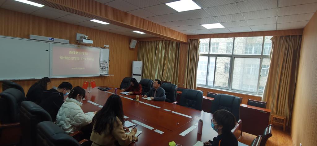为进一步落实疫情防控要求,筑牢校园安全屏障,3月18日上午,教师教育学院在教七楼301会议室召开疫情防控学生工作专项会。我院党委书记潘登,副书记王艳蕊及全体辅导员、班主任出席此次会议。