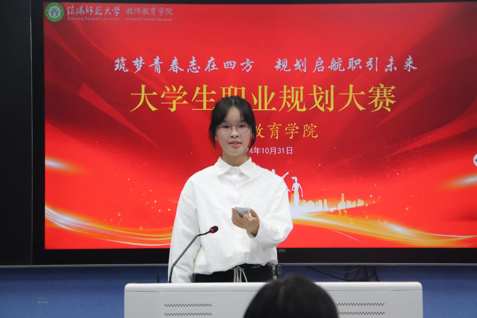 筑梦青春志在四方,规划启航职引未来。为了增强大学生职业生涯规划意识,引导大学生树立正确的职业观念,提高职业素养和就业竞争,10月31日,教师教育学院于人文楼707教室举办“筑梦青春志在四方”大学生职业生涯规划大赛。学院党委副书记王淑贤、辅导员姚雨承、李杨担任评委。比赛由2024级小学教育专业卢子妍主持。