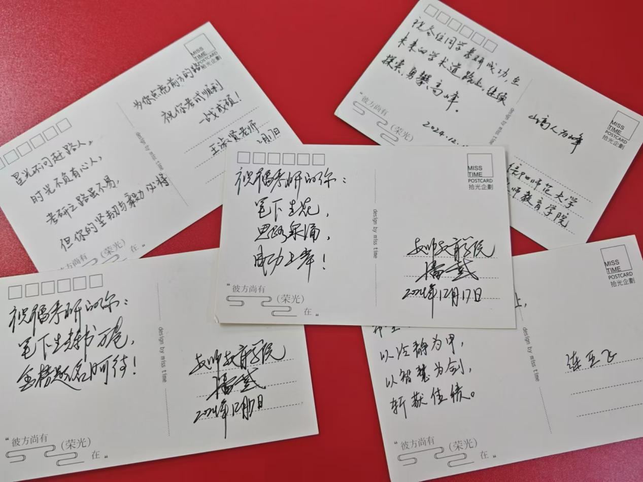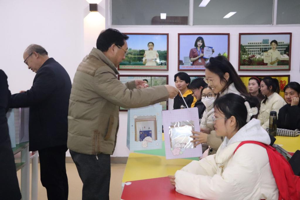 活动伊始,李文田向大家阐述考研对个人发展以及未来职业规划的重大意义,并向大家介绍了今年我院研究生报考情况与考研方向,就目前的考研形势,为大家分析了有关考研的相关政策,并为大家加油鼓劲。随后,我院优秀研究生代表董伟、刘远结合自身经历,向同学们讲解了研究生考试的注意事项。王淑贤对同学们考研路上的付出与努力给予充分肯定,并亲切地与在场考研学子进行谈心交流,关心询问同学们的学习生活情况。活动上,领导老师们向同学们分发学院为大家精心准备的考研大礼包。考研大礼包内有“苹稳上岸”、“心想事橙”、“枣日成硕”等寓意丰富的水果,有记录值得回忆考研瞬间的相框,有送来冬日温暖的暖宝宝,更有领导老师们亲手写下的祝福明信片……这些充满温暖的祝福包含着老师们对我院学子们考研顺利的殷殷期盼。会议尾声,潘登鼓励学子们学会自我调节,及时调整心态,坚定考研信心,希望同学们在考研的路上怀揣对科学探索的求知精神,不断探索,脚踏实地,始终持有恒心、耐心和专心。