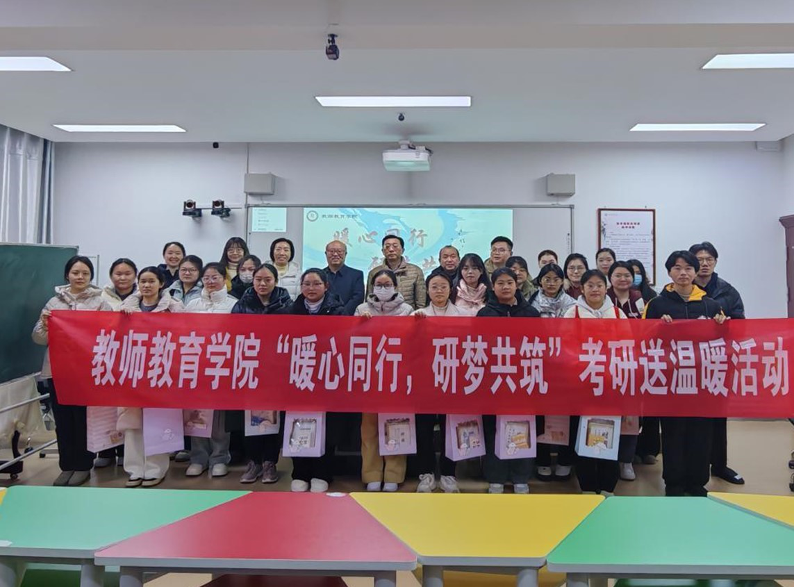2024年研究生考试临近,为进一步坚定2021级考研学子的自信心,提升考研竞争力,12月17日,教师教育学院于教七楼402教室开展“暖心同行,研梦共筑”考研送温暖活动,为考研学子加油鼓劲。教师教育学院党委书记潘登,院长李文田,党委副书记王淑贤,副院长连亚飞,辅导员姚雨承、李依,研究生导师常燕燕和2021级考研学子参加了此次活动。此次活动由姚雨承担任主持人。