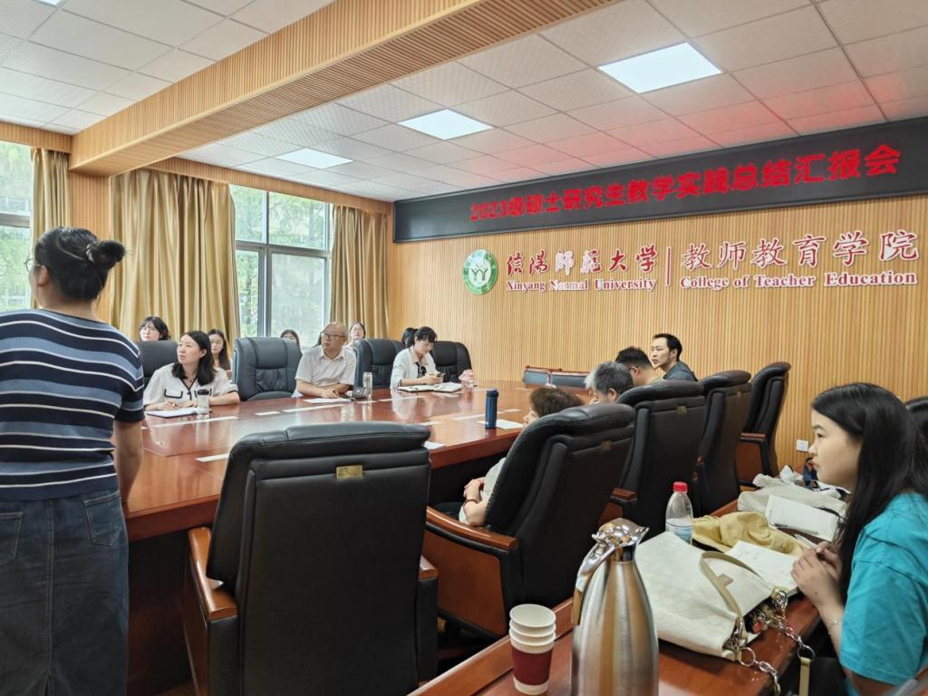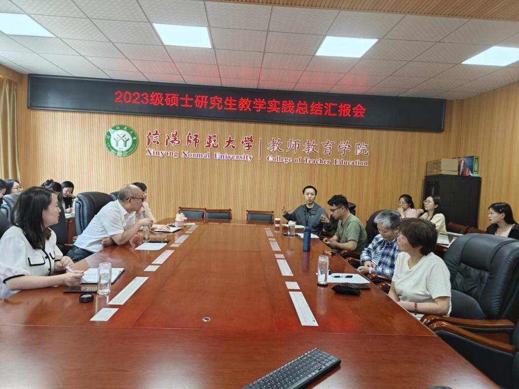 为全面总结教学实践成果,促进研究生教学能力提升,2025年6月13日,教师教育学院在教七楼301会议室举行了2023级小学教育专业硕士研究生教学实践总结汇报会。学院导师组导师、研究生秘书、2023级小学教育专业全体硕士研究生参加会议。会议由教师教育学院院长李文田主持。