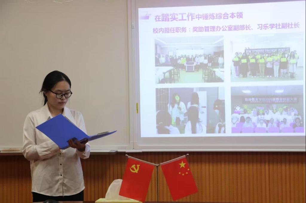 本次会议严格遵守“公平、公正、公开、择优”的原则。现场评审环节,2022级学生代表李瑶、邵艺先、马佳音三位候选人,通过个人陈述、PPT展示等形式,围绕政治素养、专业学习、创新实践、公益服务等方面进行汇报,全面展现他们的综合素养。同时,三人的综合表现生动体现了我院学子昂扬向上、锐意进取的精神风貌。随后,王淑贤书记和姚雨承老师对所有候选人的优异表现给予肯定,并鼓励低年级同学以优秀学子为榜样,勤奋学习,追求卓越。