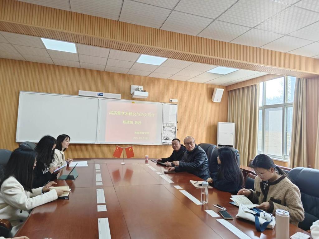 3月21日上午,应教师教育学院邀请,信阳师范大学教育科学学院杨建朝教授在教七楼301室为2023级小学教育专业硕士研究生和2020级部分高年级本科生作了题为“高质量学术研究与论文写作”的专题报告。讲座由教师教育学院副院长李文田主持,学院研究生秘书兼辅导员常燕燕老师和2023级小学教育专业全体硕士研究生参加和部分高年级本科生参加活动。