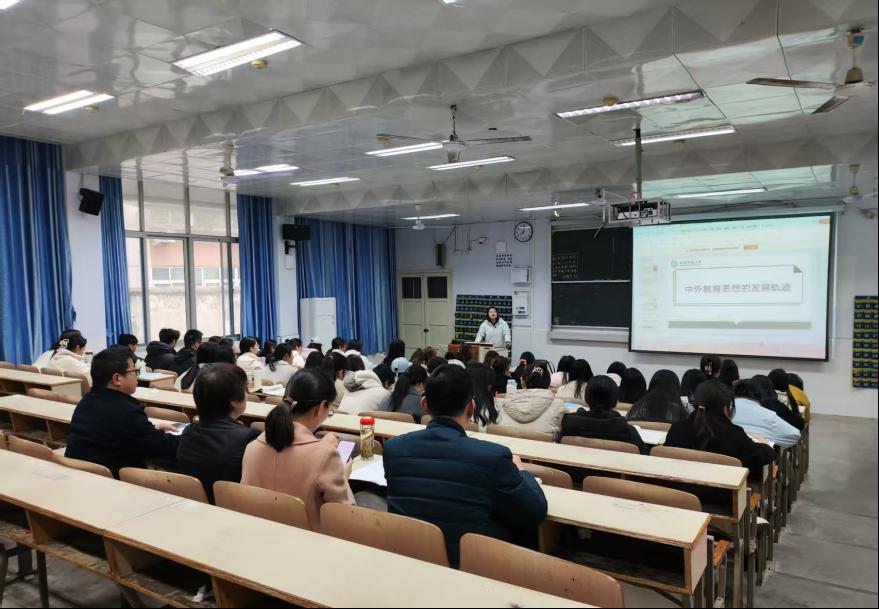 为深化教育思想研究与实践教学的融合,提升教师教育教学能力,2025年3月13日,课程教学论教研室在教六楼102教室组织开展集体听评课活动。教研室全体教师及学院教学督导专家共同观摩了新进博士李丹丹主讲的《中外教育名家思想选讲》课程,并围绕教学设计与实施展开深度研讨。
